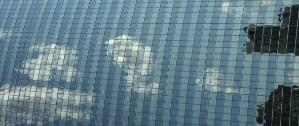 skyscraper with clouds in background